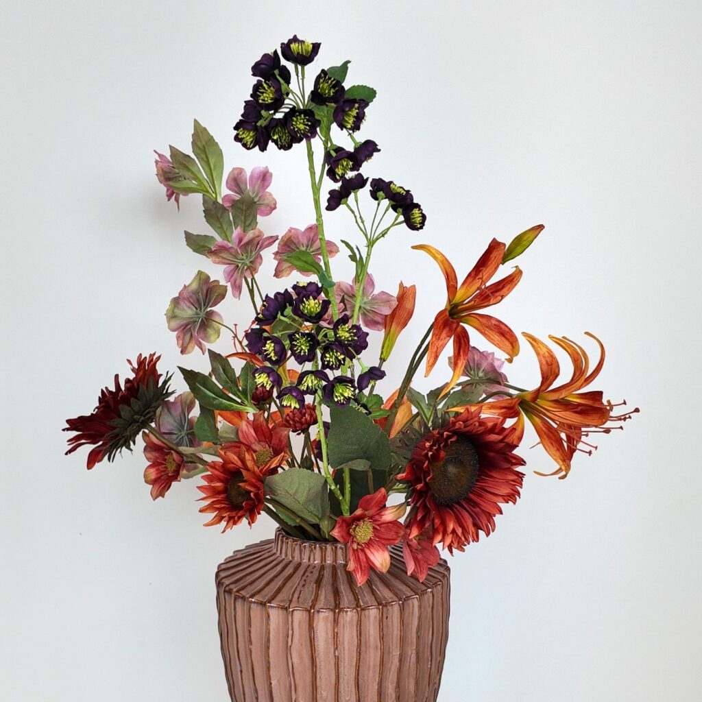 Geen water, geen verzorging en geen verspilling. Zijden bloemen vragen vrijwel geen onderhoud en gaan jarenlang mee. Dat is niet alleen praktisch, maar ook een bewuste keuze: minder transport, minder afval en een blijvend mooie oplossing voor elk interieur.